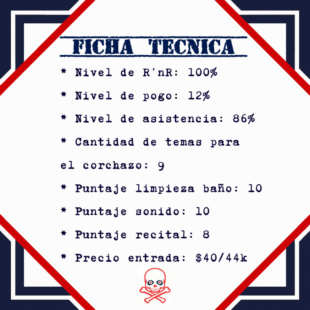 cargada de éxitos. Eso hace que cualquier persona pueda disfrutar del recital, aunque a algunos fanáticos nos deja con ganas de escuchar esas joyitas no tan conocidas. La banda no se dio respiro —no hubo pausas ni bises— y durante una hora y media despachó su vasto arsenal de R`NR, country y blues. Un show que reflejó su evolución y madurez, y reafirma por qué siguen siendo una de las bandas nacionales más exitosas y longevas en actividad.