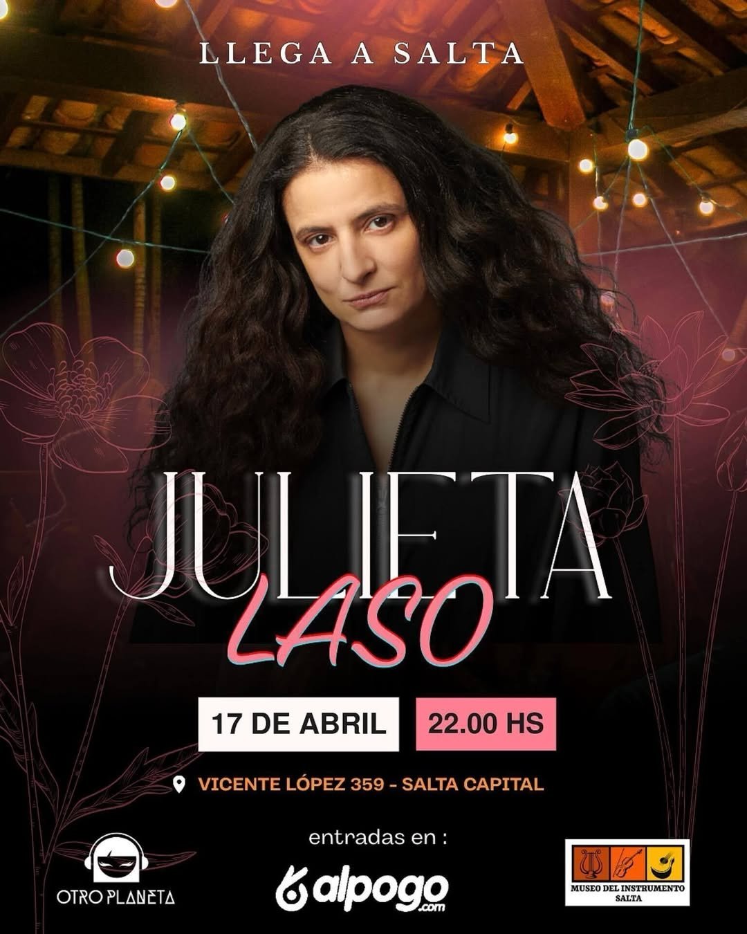 La reconocida artista argentina, Julieta Laso, recorrerá el norte del país en su “Julieta Laso Tour 2026”, con una serie de presentaciones que prometen noches cargadas de tango, valses, boleros y canciones románticas latinoamericanas. La cita en Salta es el próximo Viernes 17 de Abril, desde las 22 hrs, en Museo del Instrumento (Vicente López 359) y las ultimas anticipadas ya se consiguen desde el link https://alpogo.com/evento/julieta-laso-en-salta-25157 y en Atipiko (Zuviria 408).