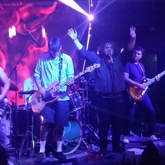La primera banda en subir al escenario fue Alto Comando Humas. Tras una intro, arrancaron su set con “Rodando”, carta de presentación de una nueva formación. Al Zorro, Pol y Brian se les sumó una dosis extra de potencia con una segunda guitarra en manos de Rupert Corimayo, viejo conocido que regresa a la escena, y la sorpresiva incorporación de una voz: Mónico Moon, con su particular y oscuro carisma.